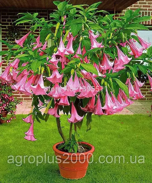 Як сіяти бругмансію Насіння розміщують на відстані в кілька сантиметрів одне від одного, злегка притискають і присипають півсантиметровим шаром ґрунту. Контейнер закривають і зберігають в теплому (близько 25°C) місці. Там же встановлюють додаткове освітлення (10 годин на добу – мінімум).