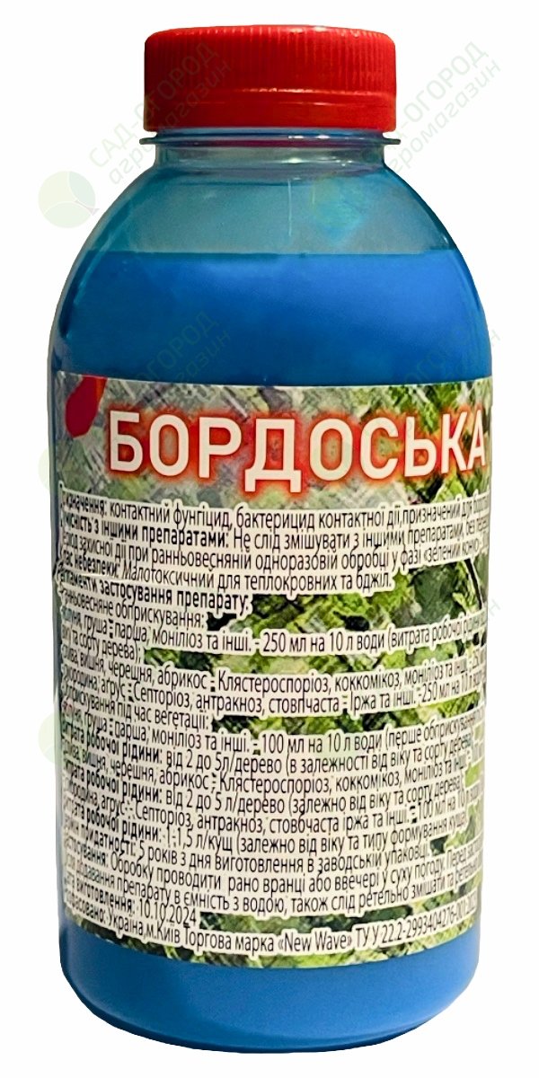 Рецепт бордоської суміші Пропорції для приготування 3% розчину бордоської суміші: – на 10 л розчину – 300 г мідного купоросу + 300 г негашеного вапна. Бордоську рідину готують у пластикових чи емальованих відрах та уникають металевої тари, яка може окислюватися.