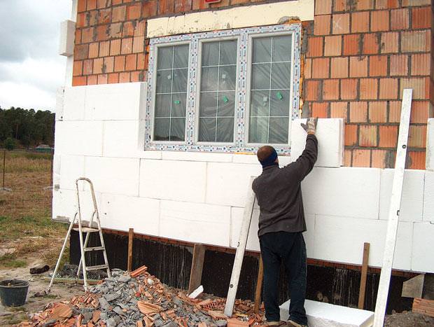 Пінопласт відмінно клеїться спеціальною монтажною піною, а екструдований полістирол вимагає застосування інших складів. Наприклад, для зовнішніх робіт (утеплення фасаду будинку) застосовується спеціальний цементно-мінеральний клей для пінополістиролу.