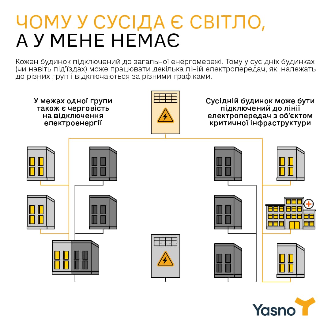 В деяких будинках не застосовують графіки відключення електроенергії через те, що той чи інший будинок заживлений від однієї лінії з об’єктом к …
