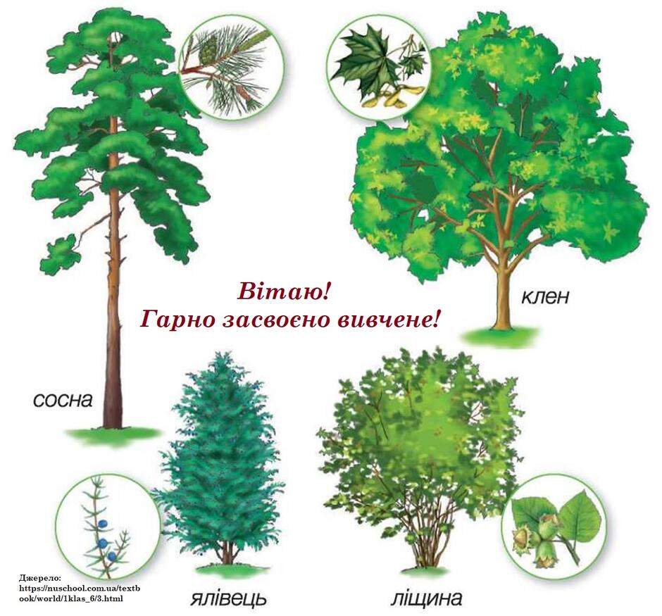 Дерева дають їжу – горіхи і овочі. Насіння дерев – їжа для птахів, білок і інших малих звірят. Деякі звірята їдять гілки і бруньки дерев. Листям дерев можна годувати худобу.