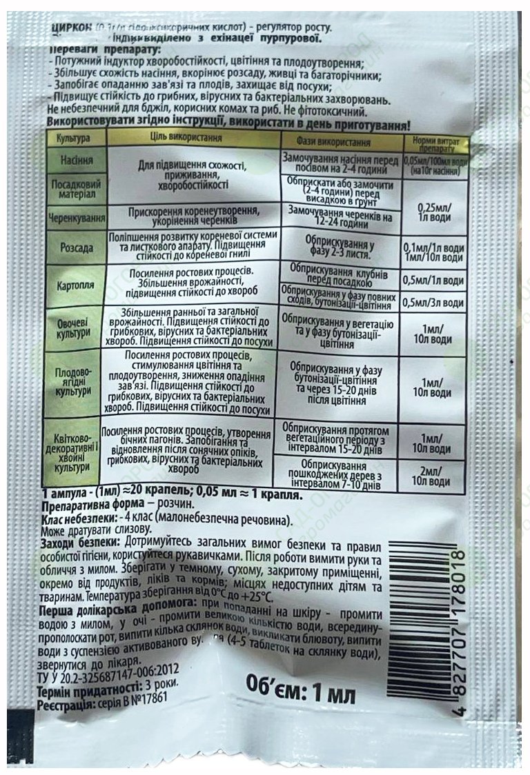 живці плодових дерев, троянд – 40 крапель (1 мл) Циркону на літр води – на півдоби;; живці інших культур – 10-20 крапель на літр води – на 18 …