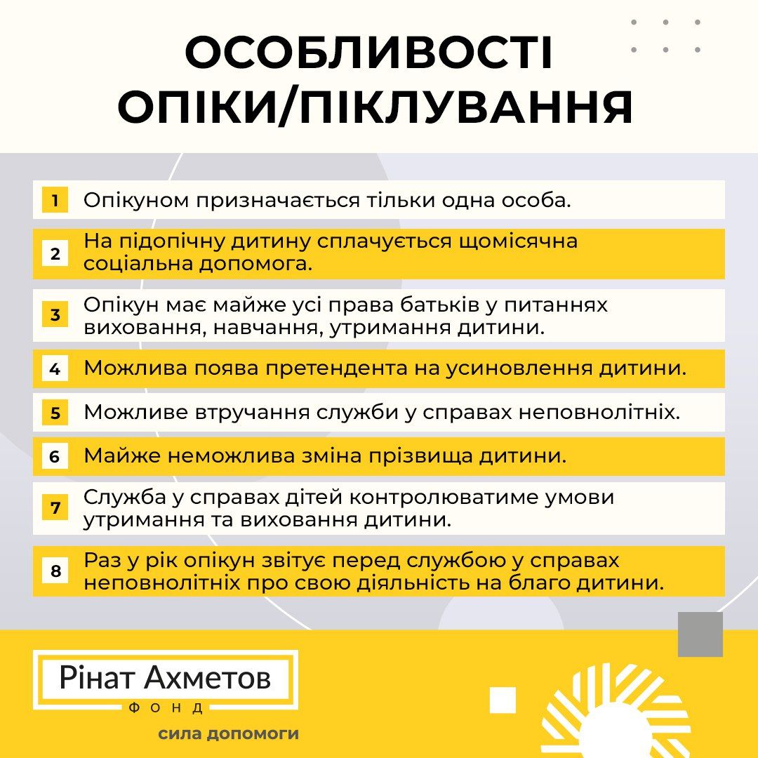 Опіка встановлюється над дітьми, які не досягли 14 років, піклування — над неповнолітніми дітьми з 14 до 18 років. Опікун (піклувальник) зобов’язаний виховувати …