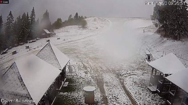 У Карпатах, на горі Піп Іван, температура повітря опустилася до -5°С. У понеділок, 30 вересня, в Україні випав перший сніг.