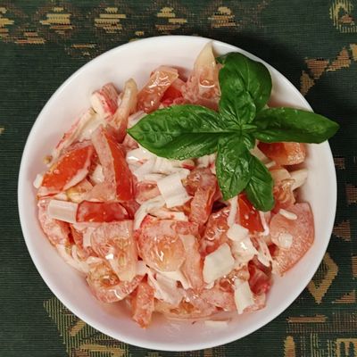 "Крабовий з помідорами"- незвично і дуже смачно! ▪︎Крабові палички -250гр. ▪︎Помідори -500гр. ▪︎Курячі яйця -5 шт. ▪︎Майонез -100гр.