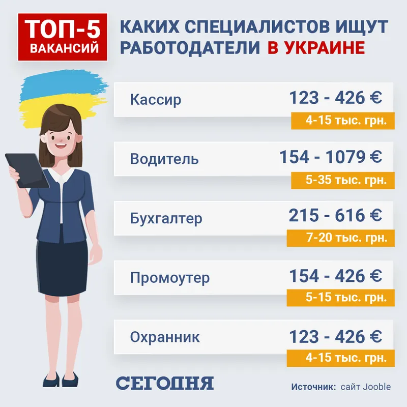 інженер-програміст – 110 тис. грн, · агроном – 100 тис. грн, · бухгалтер – 92 тис. грн, · верстатник деревообробних верстатів – 85 тис. грн, · водій …