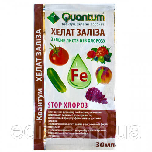 Концентроване мікродобриво, що містить залізо в хелатній формі (EDTA). Застосовується для підживлення культур, чутливих до нестачі заліза (овочеві, плодові, виноград, хвойні рослини, газонні трави та інші).