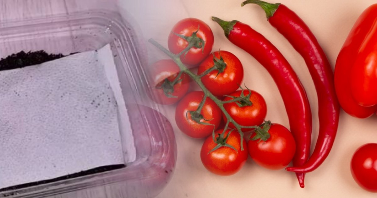 Для цього потрібно взяти неглибокий лоток і покласти туди складений у кілька шарів і змочений водою шматок паперу. На нього висівають насіння овочів або квітів, накривають контейнер плівкою і ставлять у теплому місці. Зазвичай проростки з'являються через 5–7 днів, перець може зійти трохи пізніше.