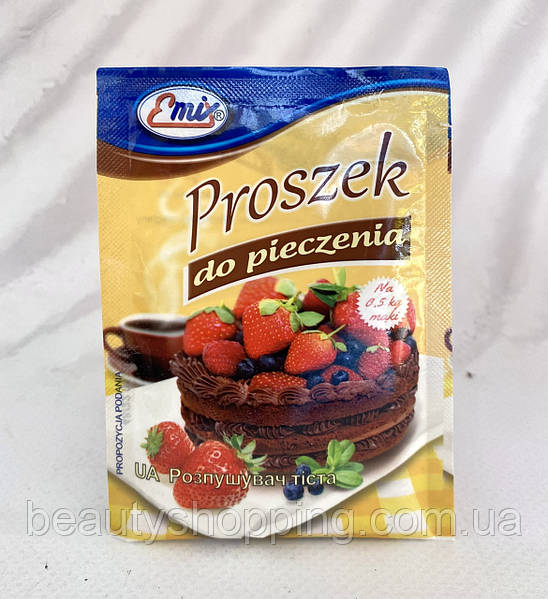 Склад: крохмаль кукурудзяний, розпушувач пірофосфат натрію, розпушувач сода харчова, регулятор кислотності натуральний винний камінь.