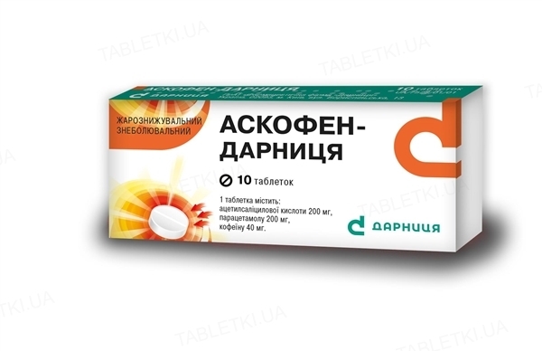 Аскофен-Дарниця таблетки №10 у пач. 20.26 грн. Аскофен-екстра таблетки №10, 28.98 грн. Аскофен-Дарниця таблетки №10 у бліс. б/пачки, 31.90 грн. Аскофен Л …