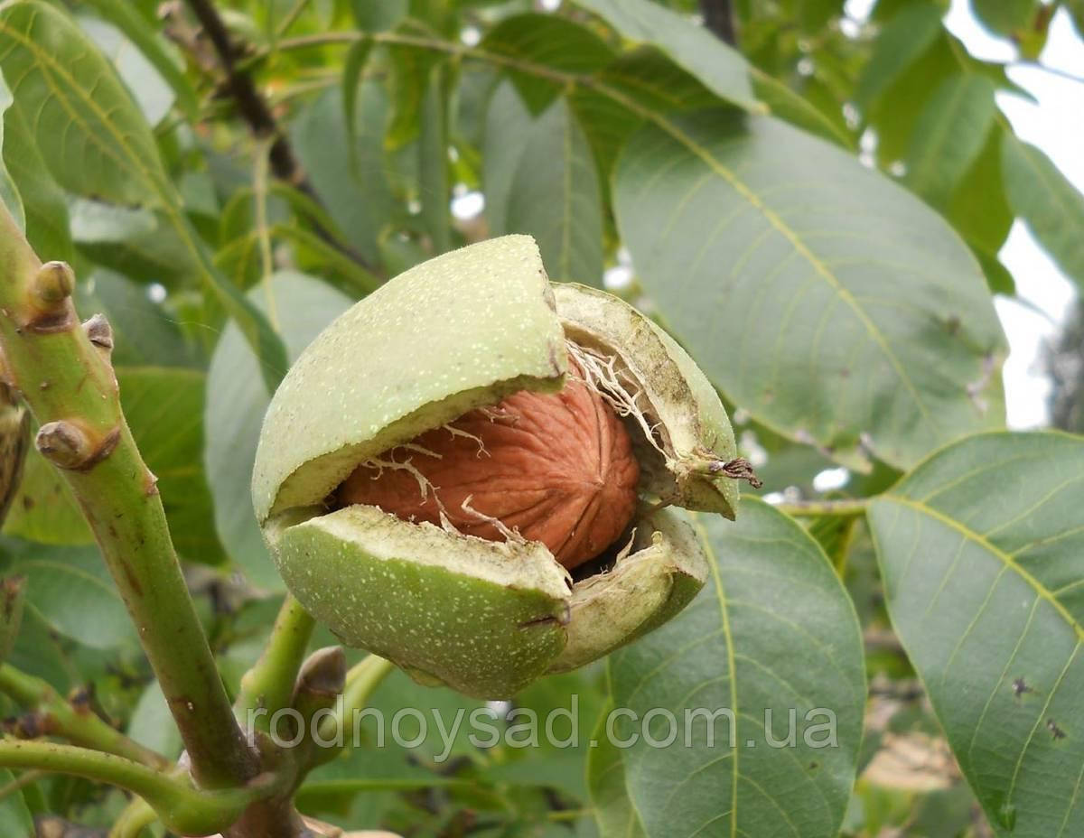 Сіянці плодоносять на 4-й рік, прищеплена форма — на 2-й. Ядро горіха практично білого забарвлення, солодке. З дерева можна зібрати 30 кг …