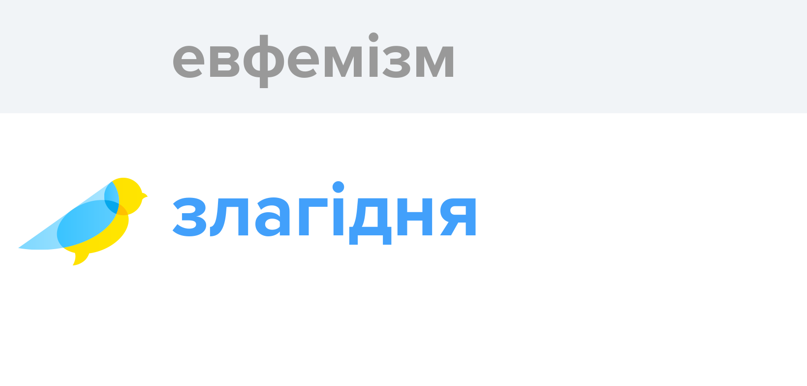 Евфемізм — слово чи вираз, яким замінюють у мові грубе, непристойне, з неприємним емоціональним забарвленням… Найкращий переклад — Злагідня (10 голосів).
