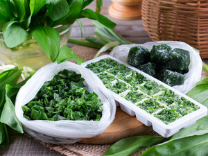 Видавити з пакетів повітря, закрити і знову помістити в морозилку. Заморожування порціями. Мите листя базиліка збити у блендері з невеликою кількістю води. Додати сіль і прянощі. Заморозити в пакетах або формі для льоду. У …