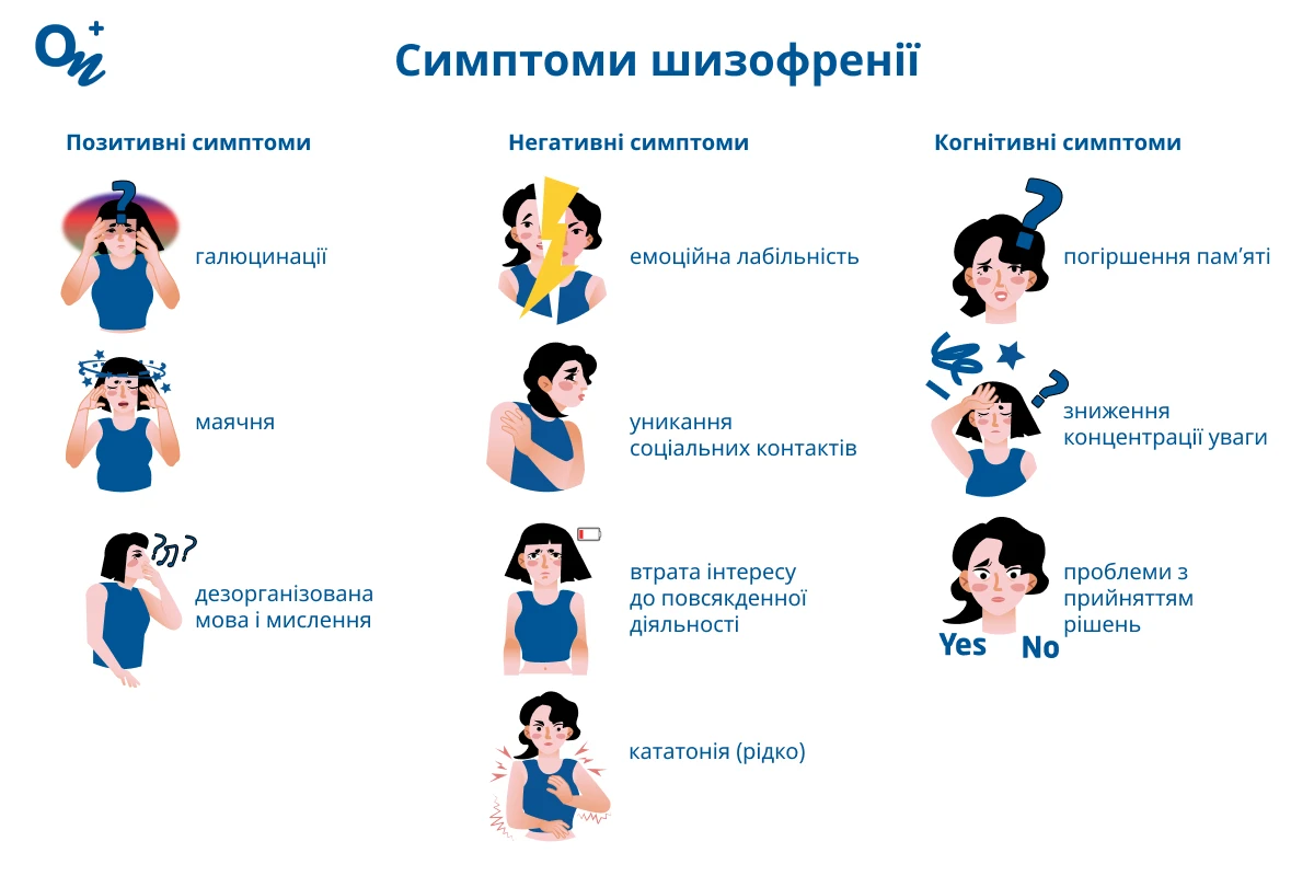 Найголовнішими та показовими симптомами шизофренії є галюцинації (частіше слухові) та марення. · Хворому може здаватися, що оточуючі чують його …