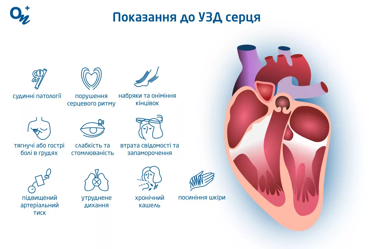 - УЗД серця. Призначається з метою побачити на моніторі кровотік в серці, перевірити стан і функціонування міокарда.