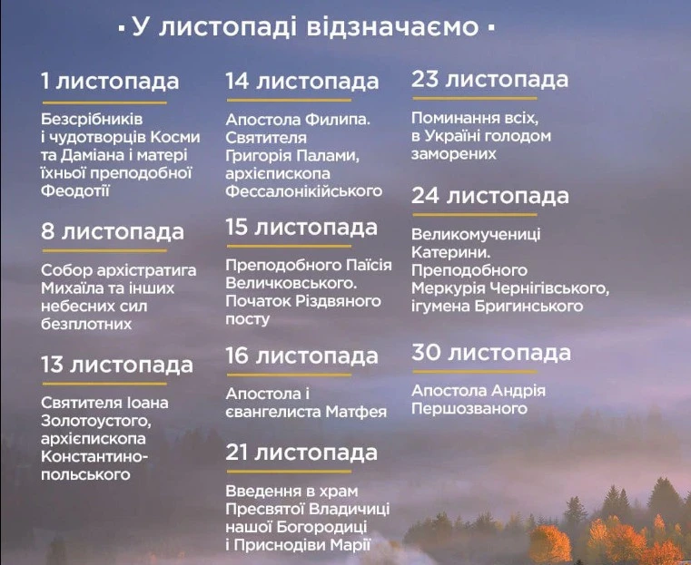 У листопаді віряни відзначатимуть кілька важливих релігійних свят, зокрема Собор Архистратига Михаїла, Введення в храм Пресвятої Богородиці та …