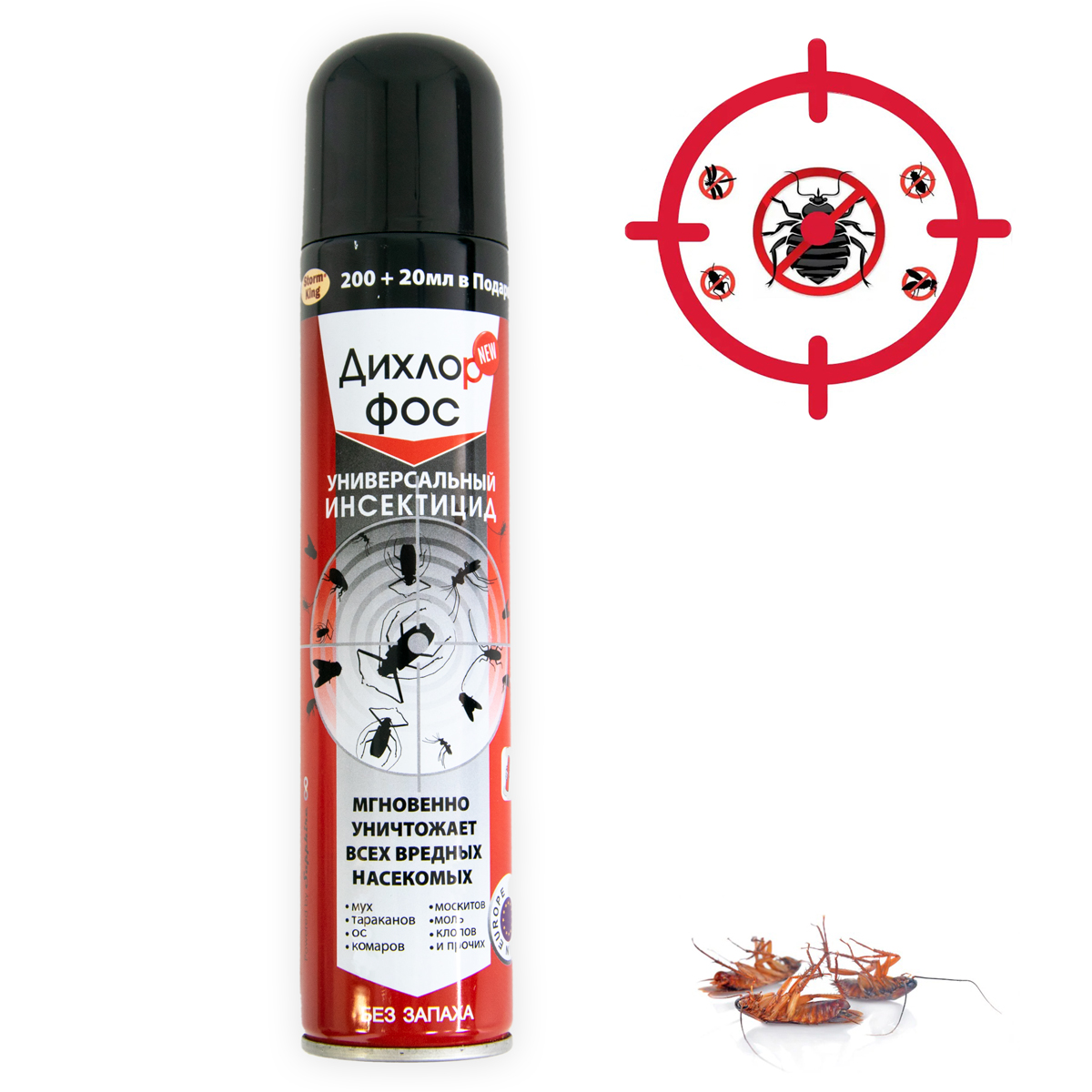 Опис товару Дихлофос ULTRA — це універсальний засіб від усіх видів побутових комах: мух, комарів, тарганів, мурах, метеликів, молі, клопів, бліх та інших. Має високу ефективність, перевірену часом. Створює захисний бар'єр на оброблених поверхнях і діє до 2-х тижнів після обробки.